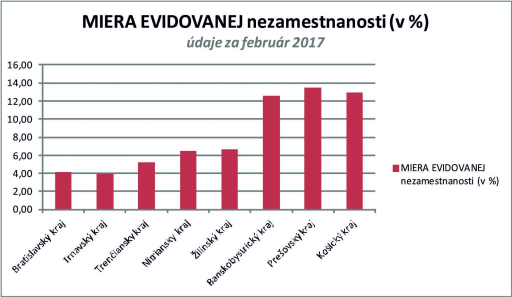 Prehľad nezamestnanosti v okresoch SR február 2017
