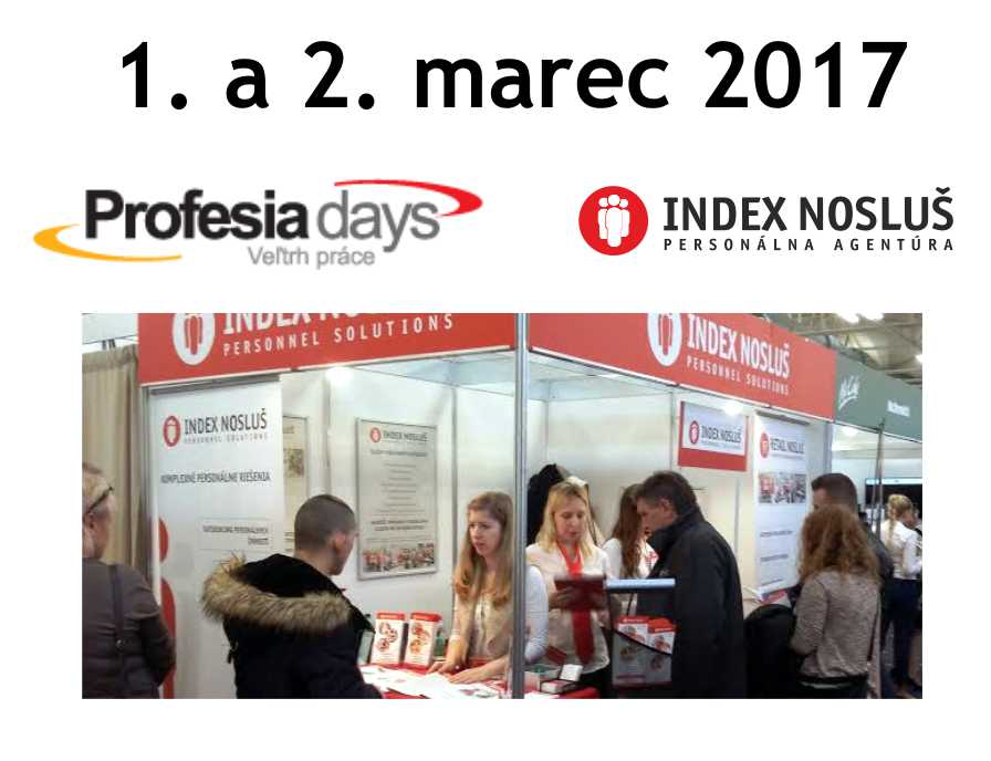 Máte už program na prvé dva marcové dni? 🙂 V Bratislavskej Inchebe sa bude konať veľtrh práce PROFESIA DAYS, kde už tradične nájdete aj stánok INDEX NOSLUŠ.