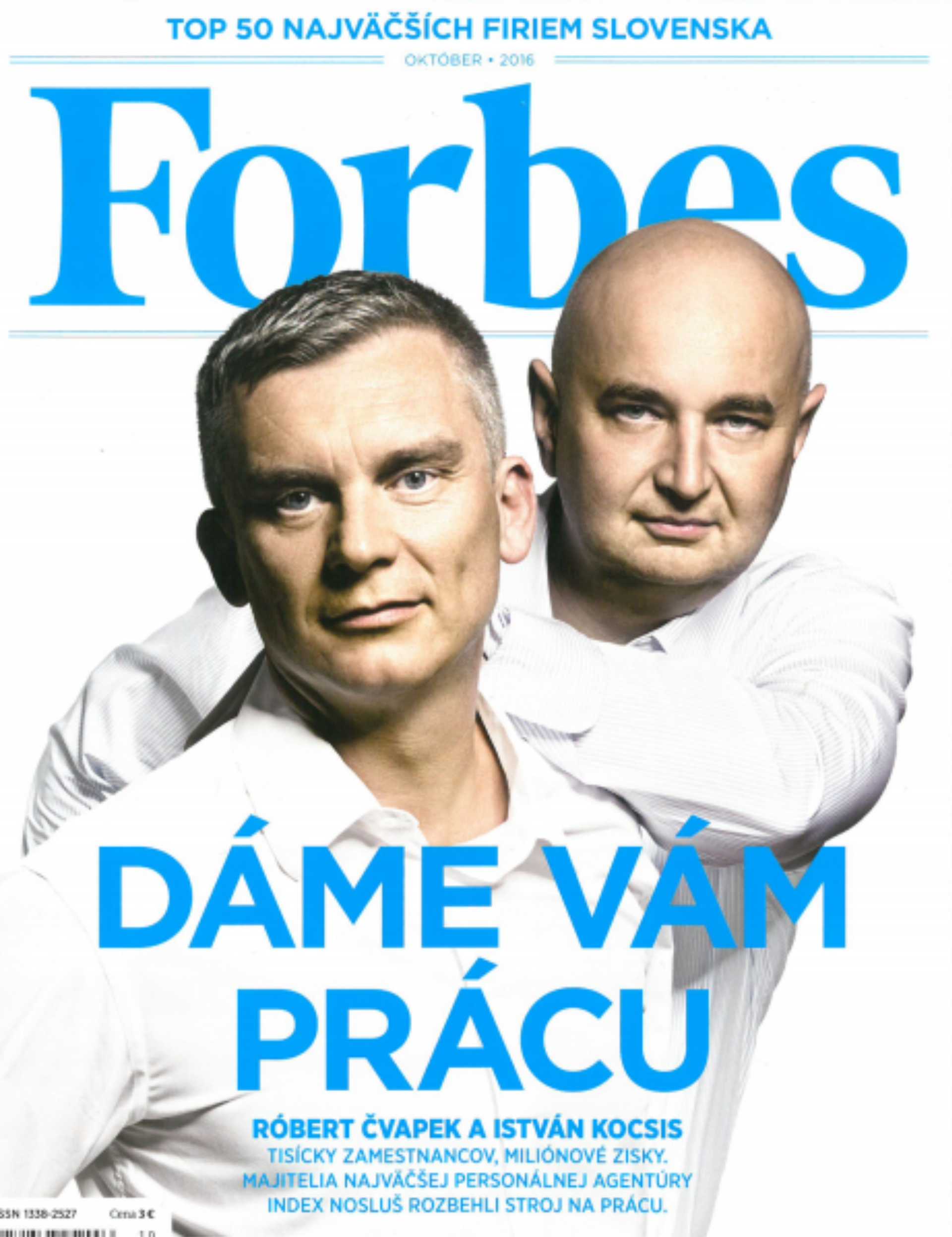 História a vývoj INDEX NOSLUŠ, ale aj pohľad zakladateľov úspešnej personálnej agentúry na súčasný trh práce na Slovensku a v Čechách – októbrové vydanie mesačníka Forbes prináša rozhovor s konateľmi INDEX NOSLUŠ – Róbertom Čvapkom a Istvánom Kocsisom.