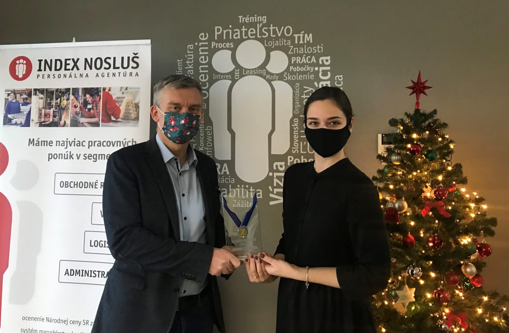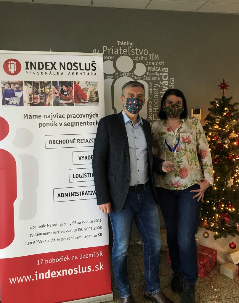 Zástupkyne spoločnosti odovzdali ocenenie priamo vedeniu INDEX NOSLUŠ. Osobne ho prevzali riaditeľ spoločnosti Ing. Róbert Čvapek a výkonná riaditeľka Darina Mokráňová.