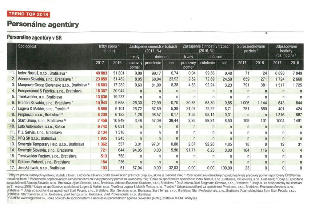 Zdroj: časopis TREND, November 2018, príloha TREND TOP, str. č. 69