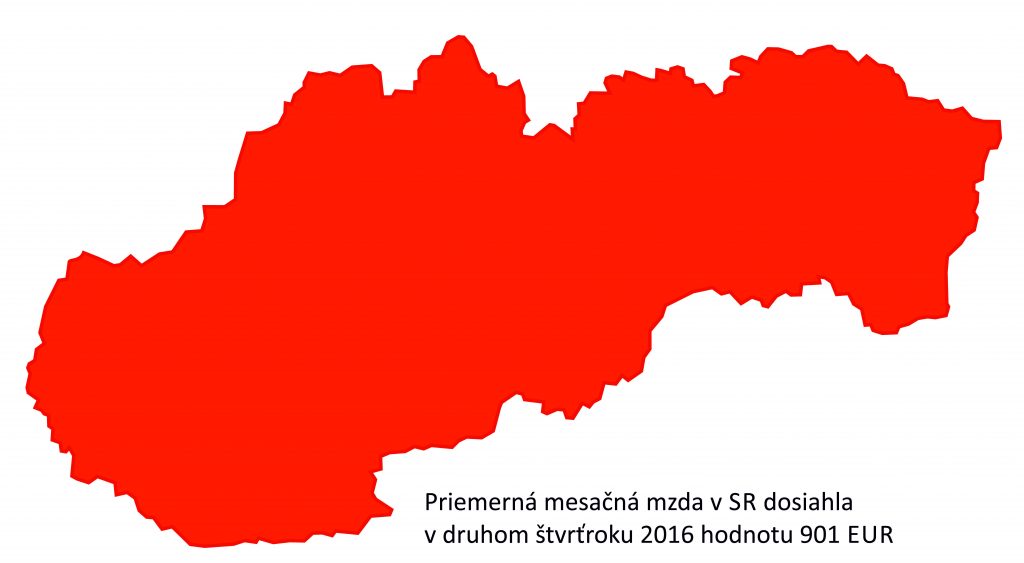 V období apríl – jún 2016 priemerná mesačná nominálna mzda zamestnanca v hospodárstve SR dosiahla hodnotu 901 EUR. Oproti rovnakému obdobiu roka 2015 sa tak zvýšila o 2,7%, informoval Štatistický úrad SR.