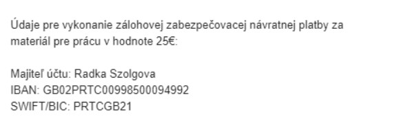 So záujemcom podvodníci komunikujú cez email radkaszolgova@gmail.com a okrem zálohovej platby žiadajú aj odoslanie osobných údajov: