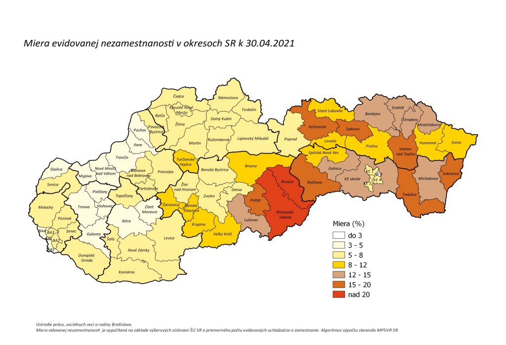 Prehľad nezamestnanosti v okresoch SR – apríl 2021