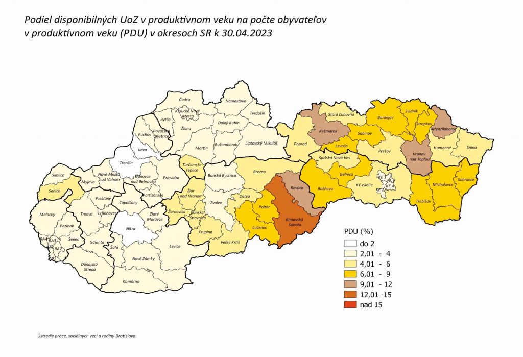 Prehľad nezamestnanosti v okresoch SR – apríl 2023