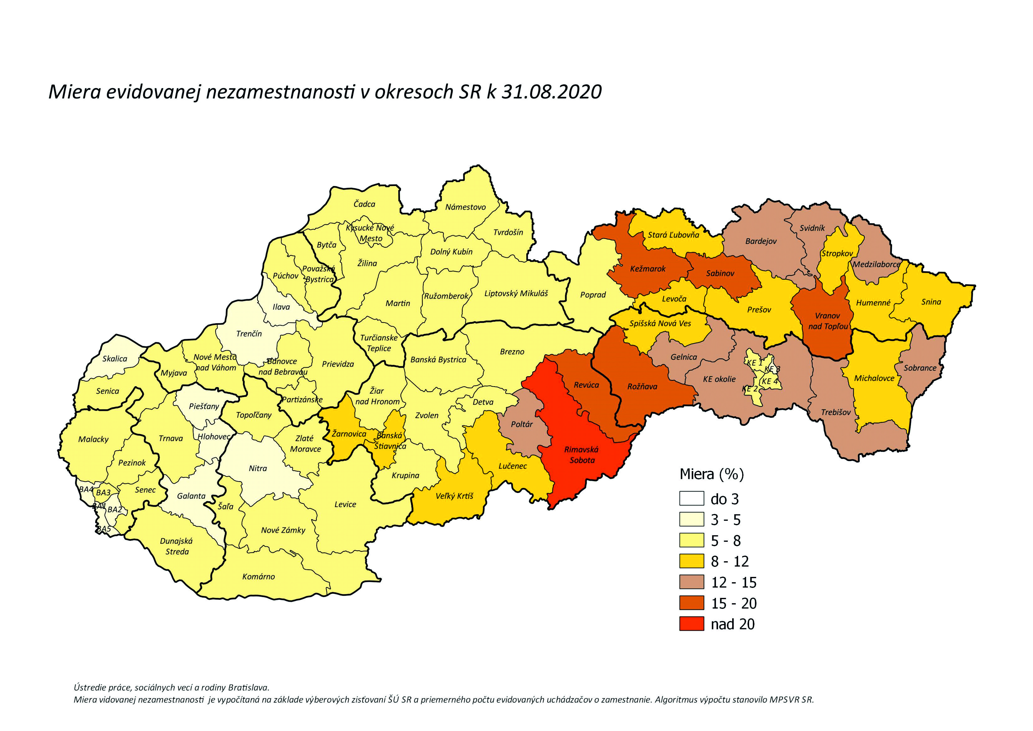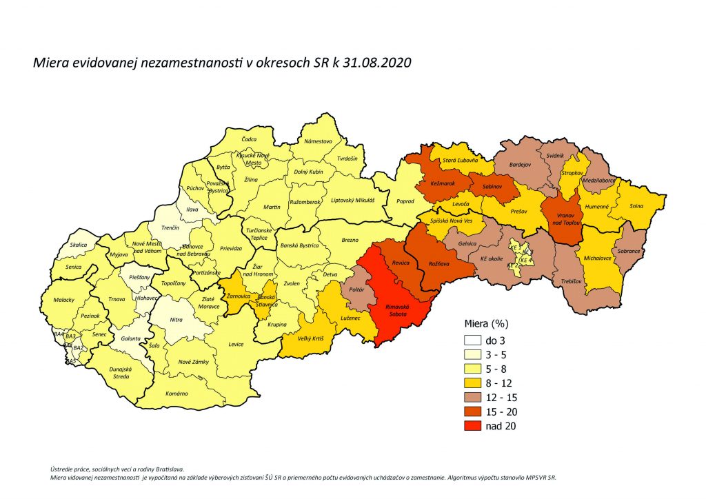 Prehľad nezamestnanosti v okresoch SR – august 2020