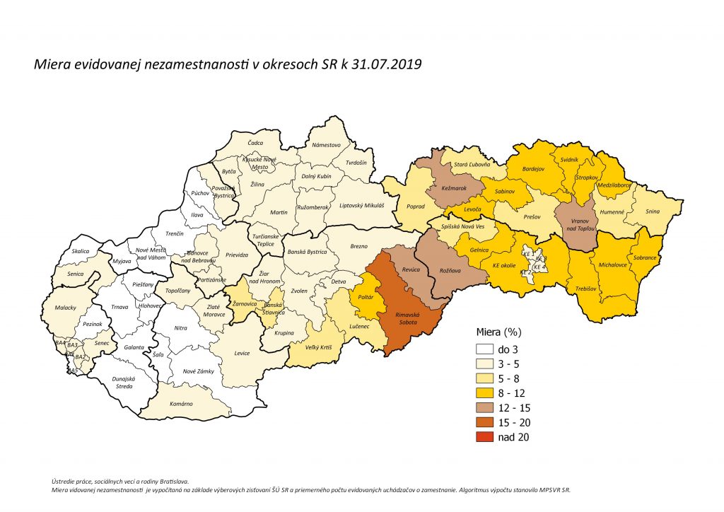 Miera evidovanej nezamestnanosti SR, júl 2019.
