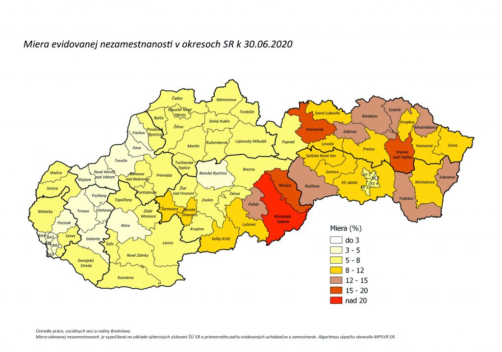 Prehľad nezamestnanosti v okresoch SR – jún 2020