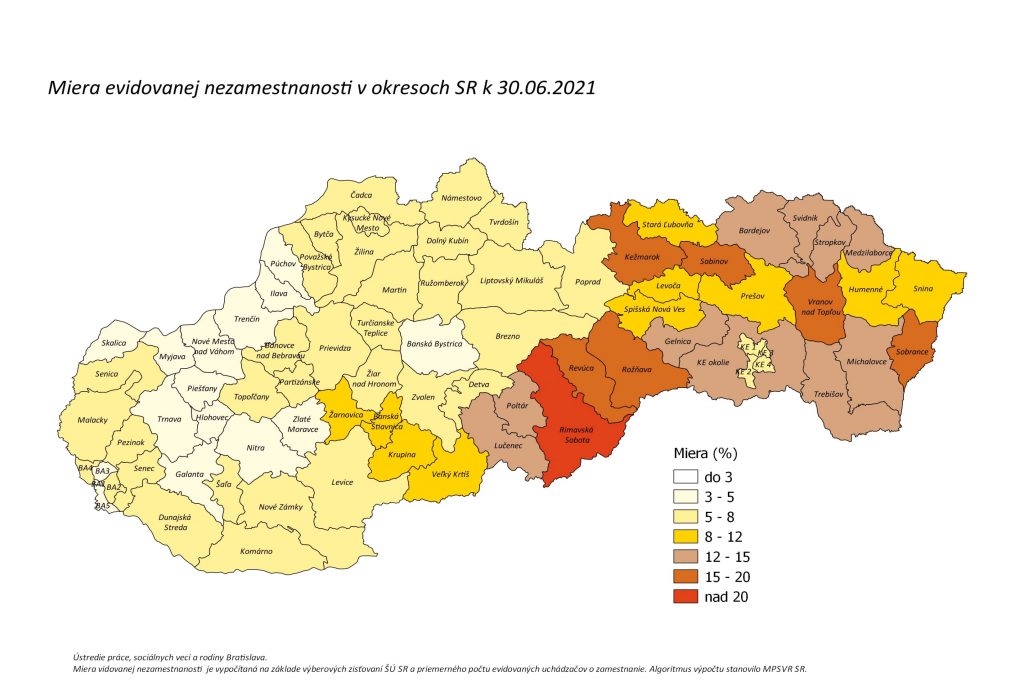 Prehľad nezamestnanosti v okresoch SR – jún 2021