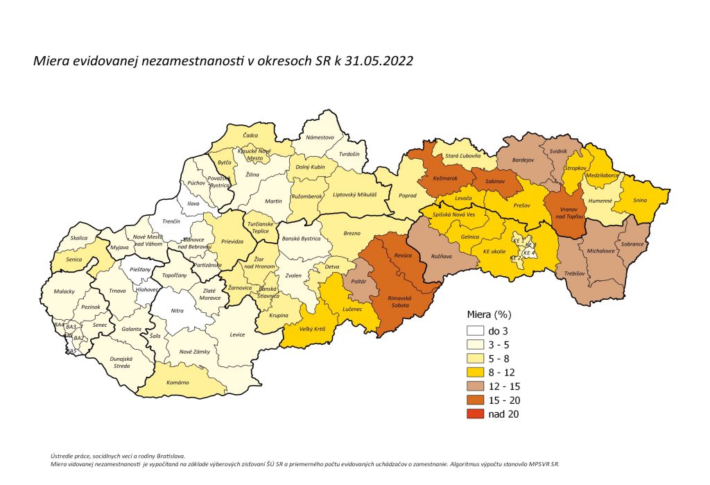 Prehľad nezamestnanosti v okresoch SR – máj 2022