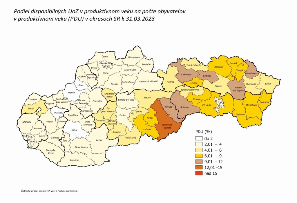 Prehľad nezamestnanosti v okresoch SR – marec 2023