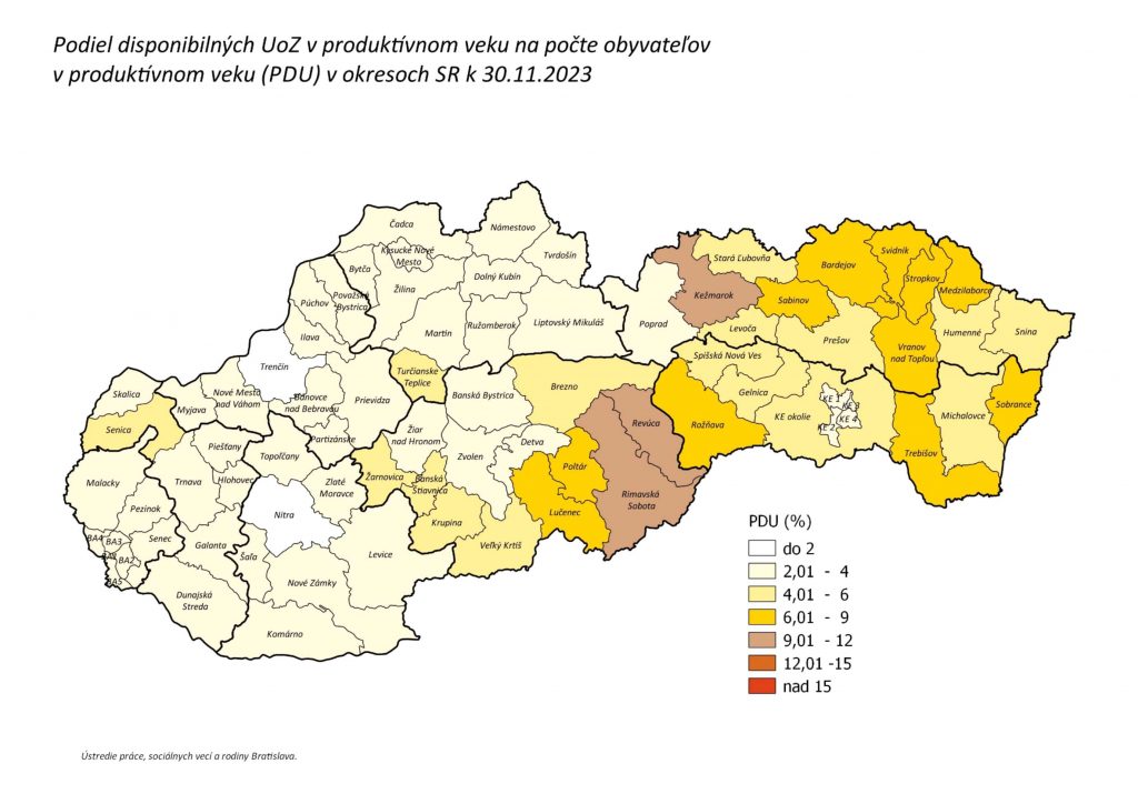 Prehľad nezamestnanosti v okresoch SR – november 2023
