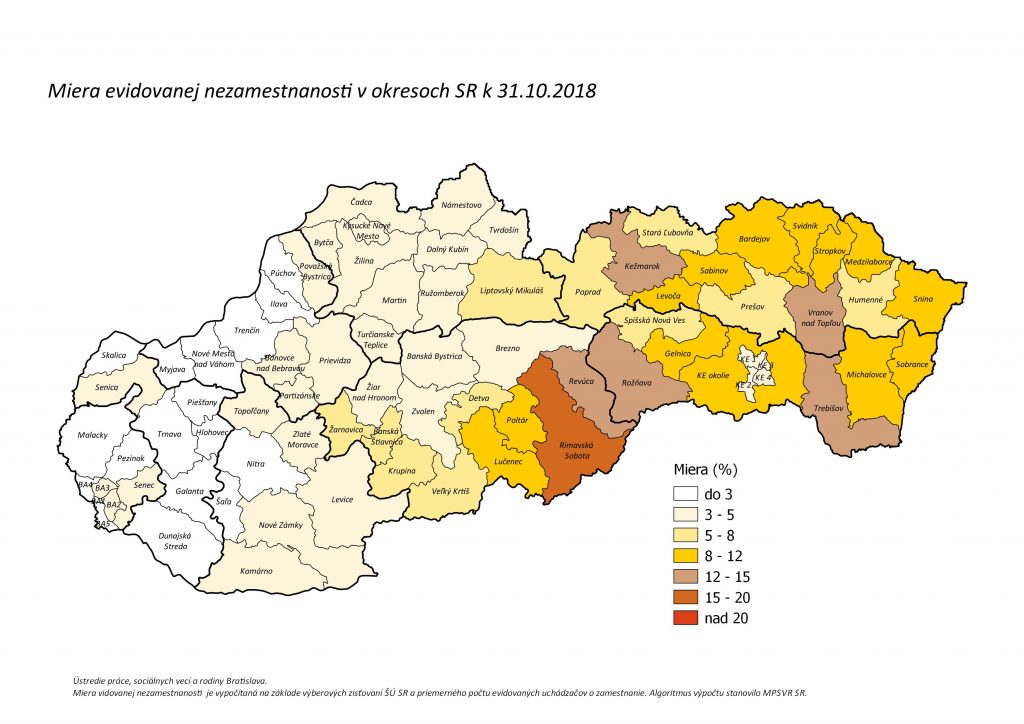 Prehľad nezamestnanosti v okresoch SR – október 2018