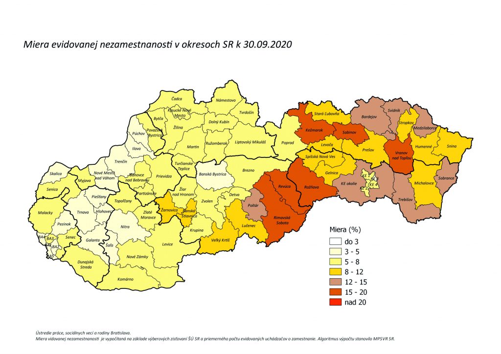 Prehľad nezamestnanosti v okresoch SR – september 2020