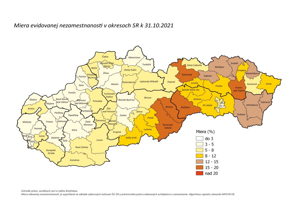 Prehľad nezamestnanosti v okresoch SR – október 2021