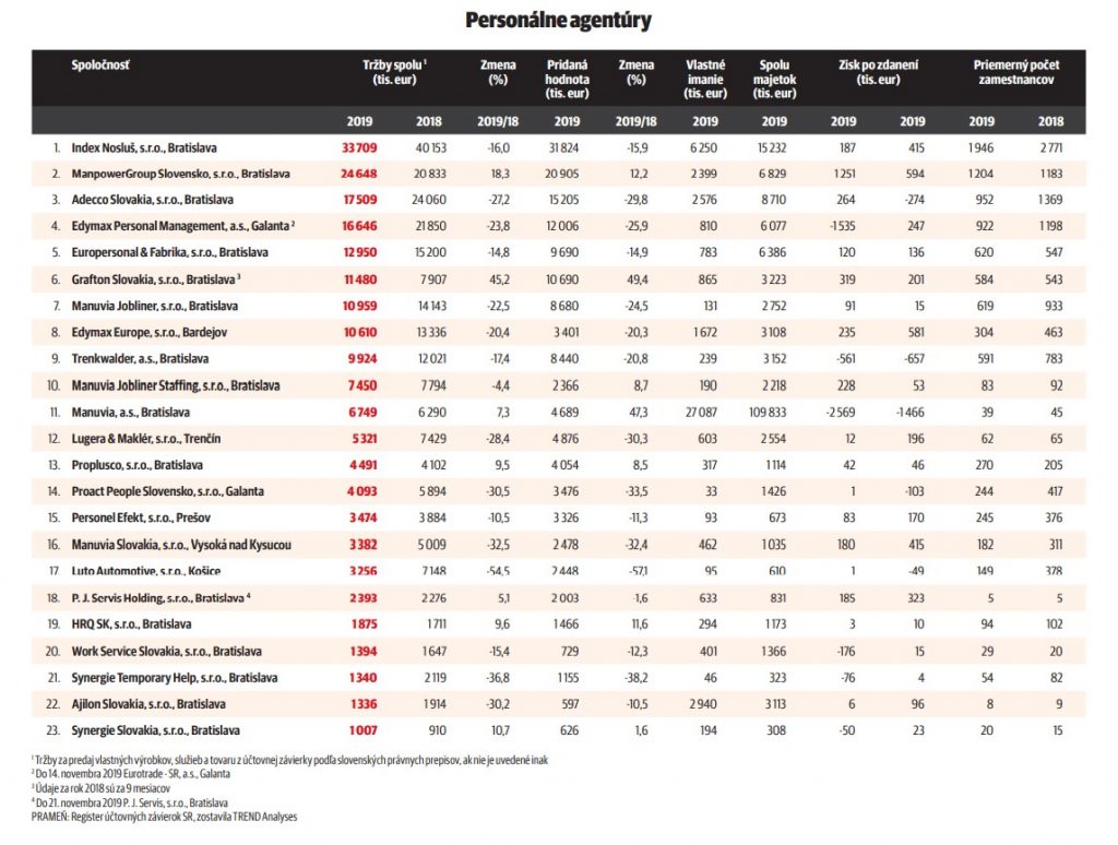 TOP Trend 2020 – INDEX NOSLUŠ je znovu jednotkou medzi personálnymi agentúrami.